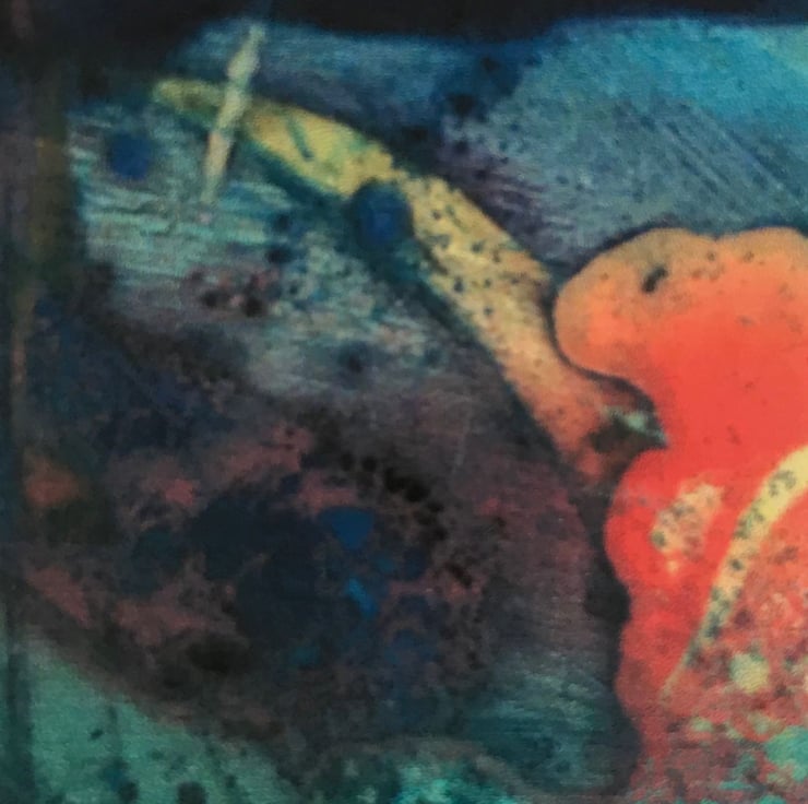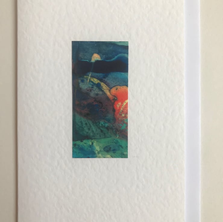 The image on this card is a mixed media painting on board, the materials include enamel and oil paint.