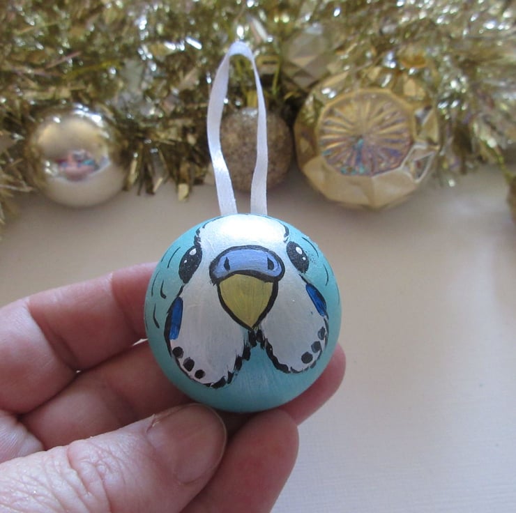 Christmas Tree Bauble Budgie Budgerigar Pet Bird Blue Hanging Decoration