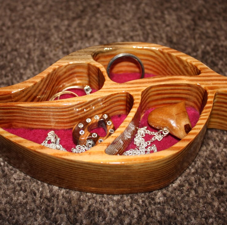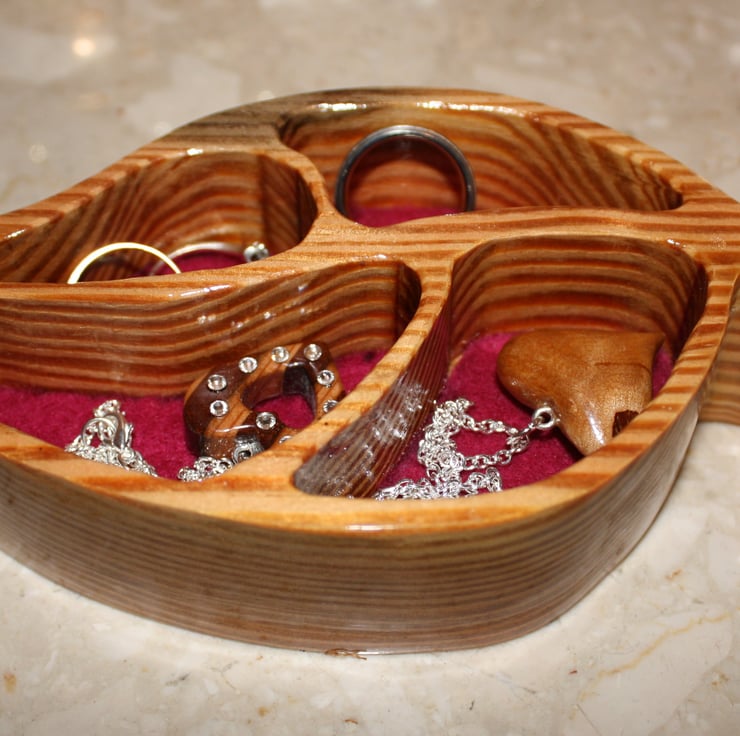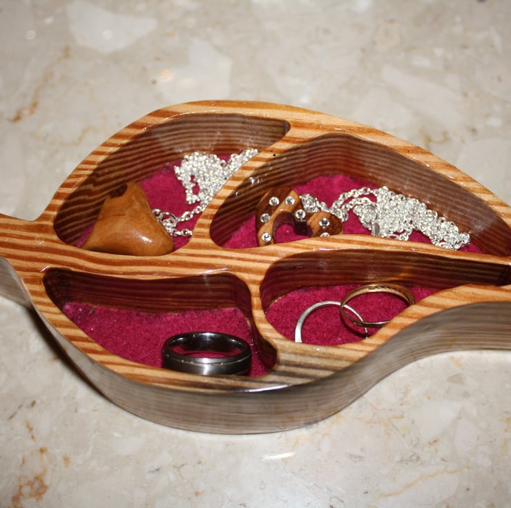 This unique leaf trinket dish has been upcycled from reclaimed wood. It is perfect for a number of uses. It could hold your jewellery, rings or even your spare change. It could be used as an exclusive piece within your home, in your office, or anywhere that your imagination could think of. A perfect present, for Mothers Day, Valentines Day or as a housewarming gift.
