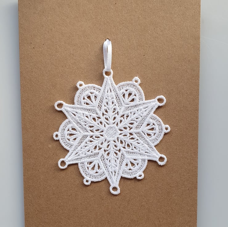 The machine embroidered snowflake star is, again, the result of a collaboration. This time with my sister.