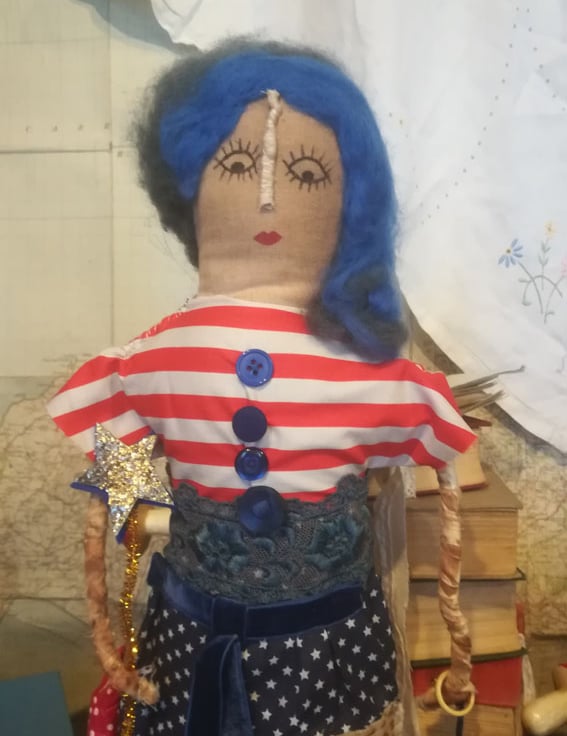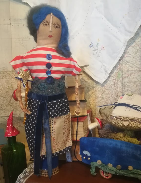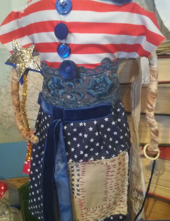 An art doll inspired by Americana, Cape Cod style Folk Art,