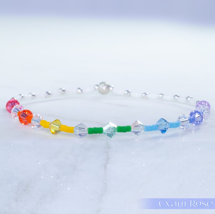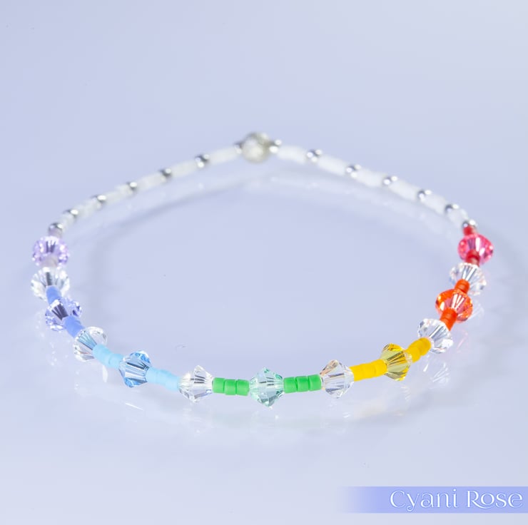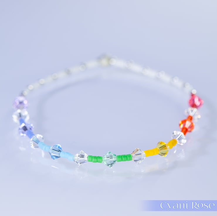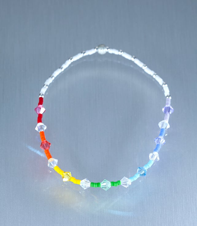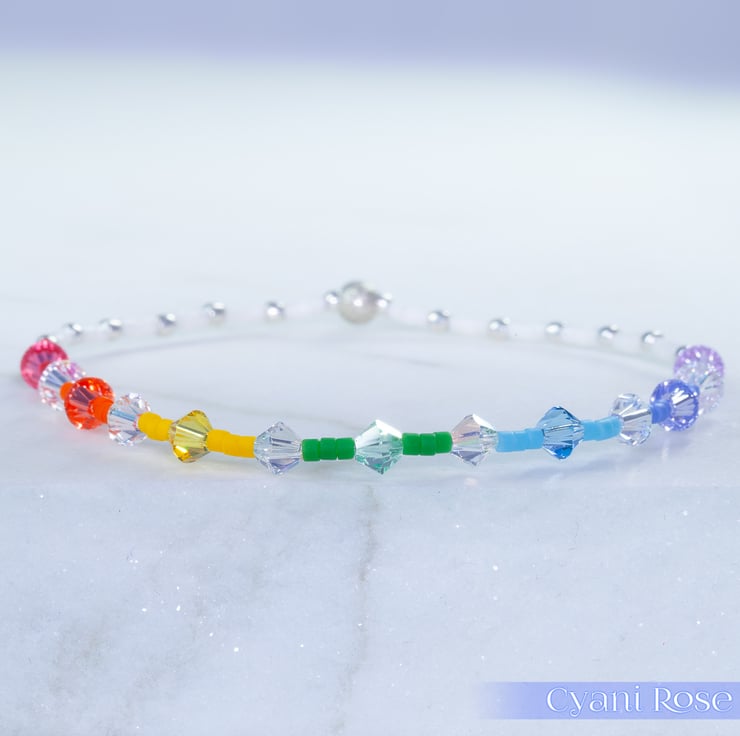 Dainty single bracelet made from Miyuki delica beads and 2mm/4mm sterling silver beads.