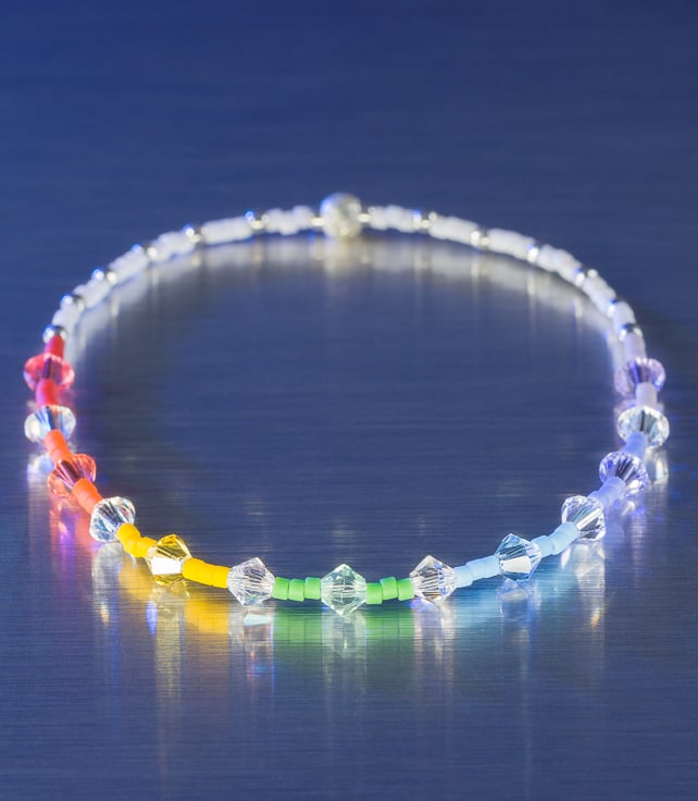 With stretchy jewellers elastic (to slip over your wrist, no clasp),
