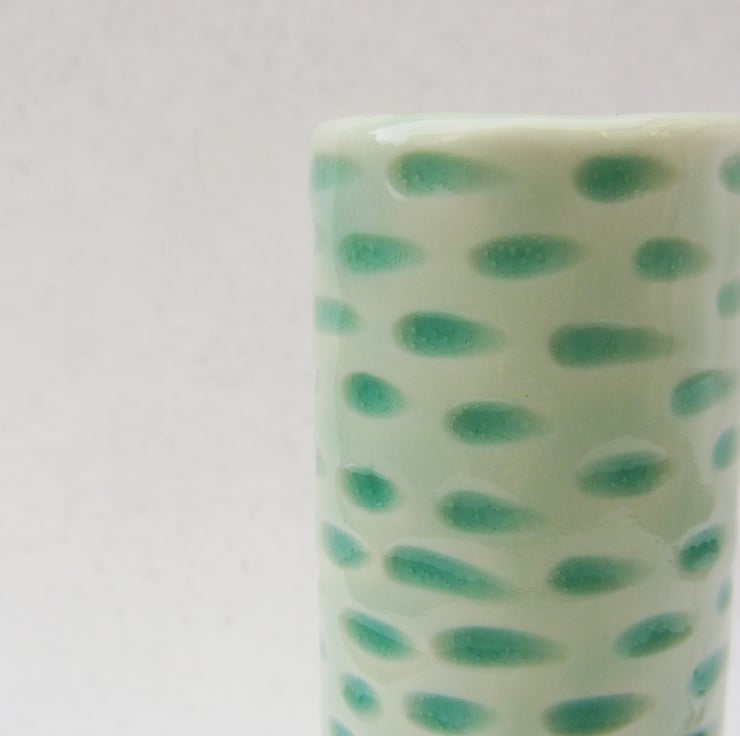 I love to make and I love all things floral. I've combined these two loves and make vases. I love to carve all my porcelain work to give a tactile texture to the vase. This particular shape is named Anna. I've taken to naming my vases after the inspirational women in my life, who have supported me and guided me.