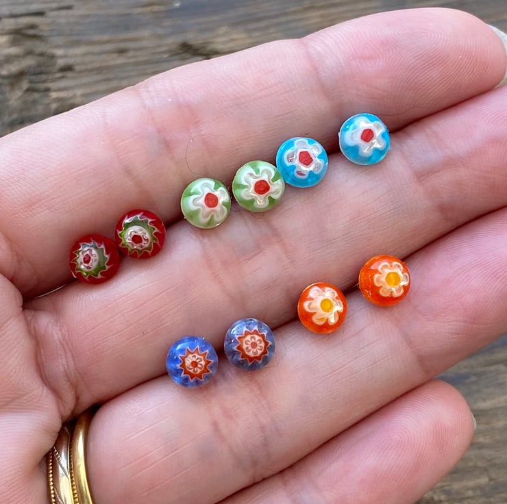 Millefiori glass cabochons are handmade, therefore no two are the same as seen in the photo.