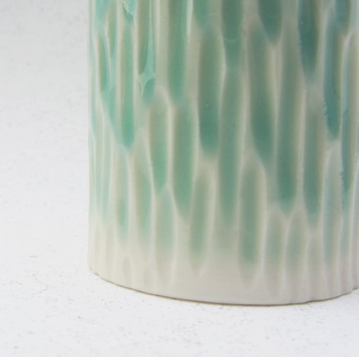 I love to make and I love all things floral. I've combined these two loves and make vases. I love to carve all my porcelain work to give a tactile texture to the vase. This particular shape is named Anna. I've taken to naming my vases after the inspirational women in my life, who have supported me and guided me.