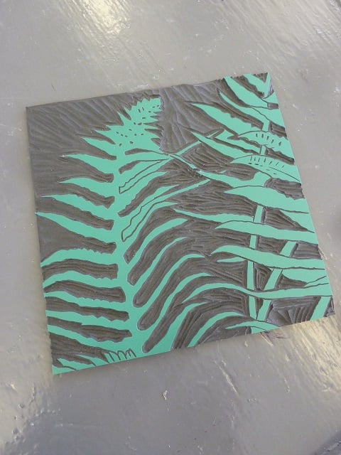 I started with making a watercolour painting of delicate, fresh ferns and took this for inspiration to carve my design onto the lino block. Then I hand printed these cards in this lovely light green colour with vegetable oil based printing ink.