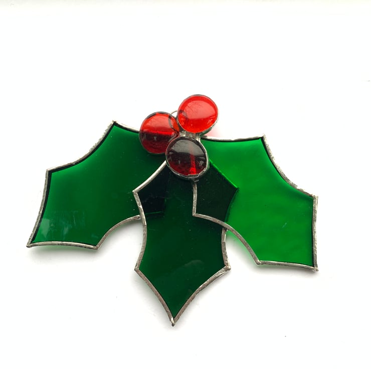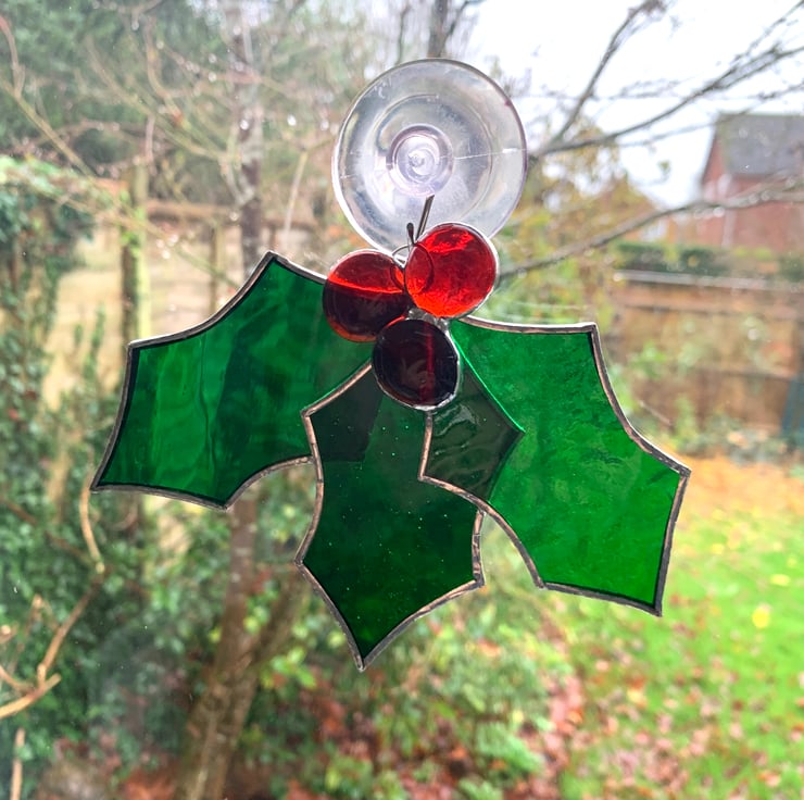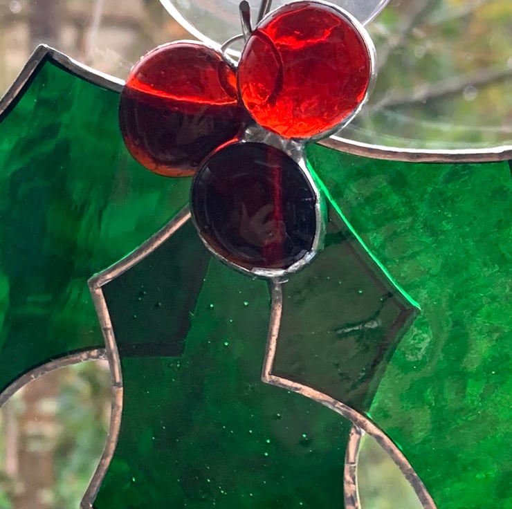Please not: this listing is for a made to order holly and berry suncatcher. It may take up to 21 days to be made and ready for posting. The pictures shown are just to show what your suncatcher will look like. As this is made to order this is non refundable.