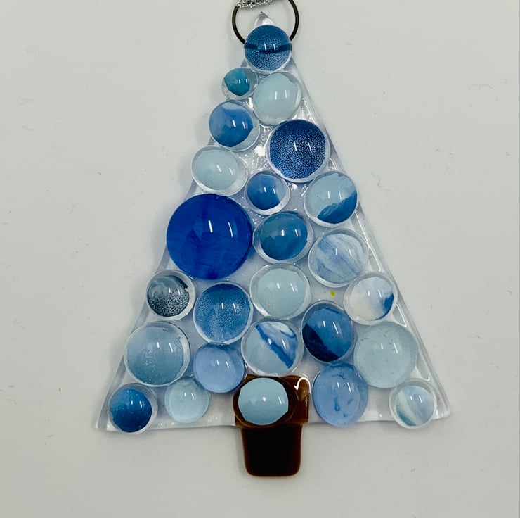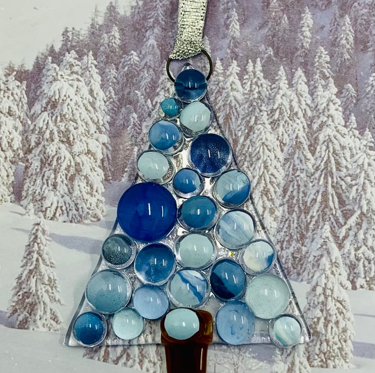 Handmade Fused Glass Xmas Tree Hanging Christmas Decoration.