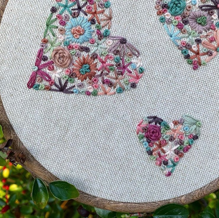 A pretty 6” trio of hearts in autumnal colours on a natural background.