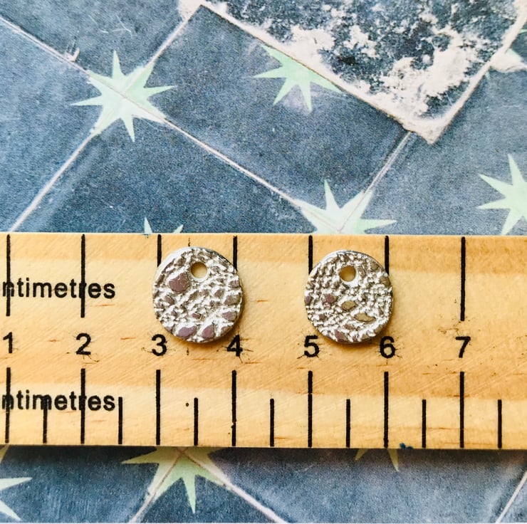 Each disc is individually rolled out by hand with a textured finish and measures approximately 1cm in diameter .