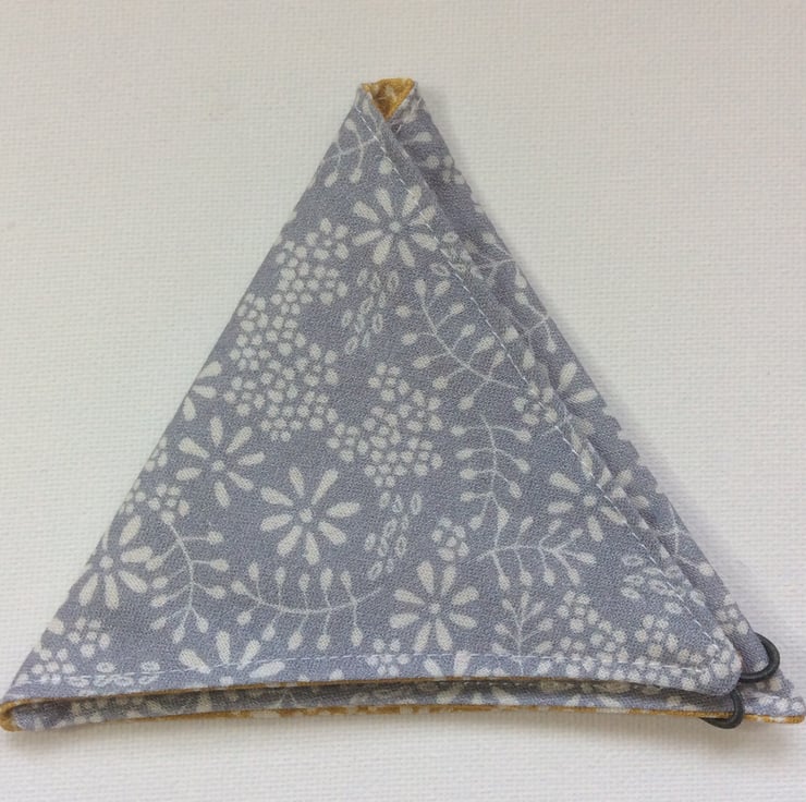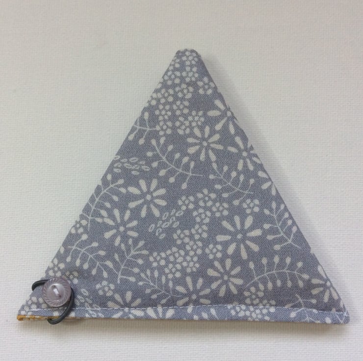 Small Triangular Coin Purse, pouch, silver grey cotton