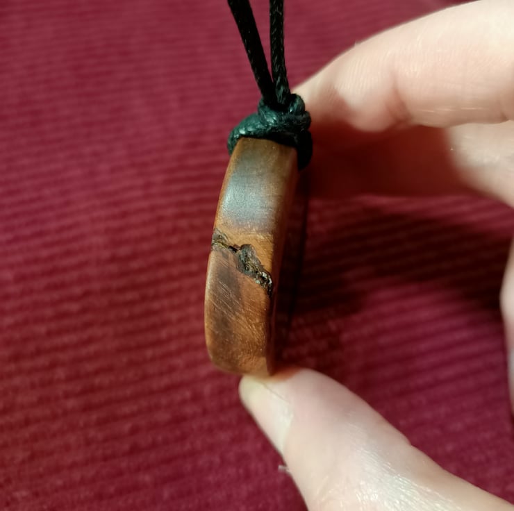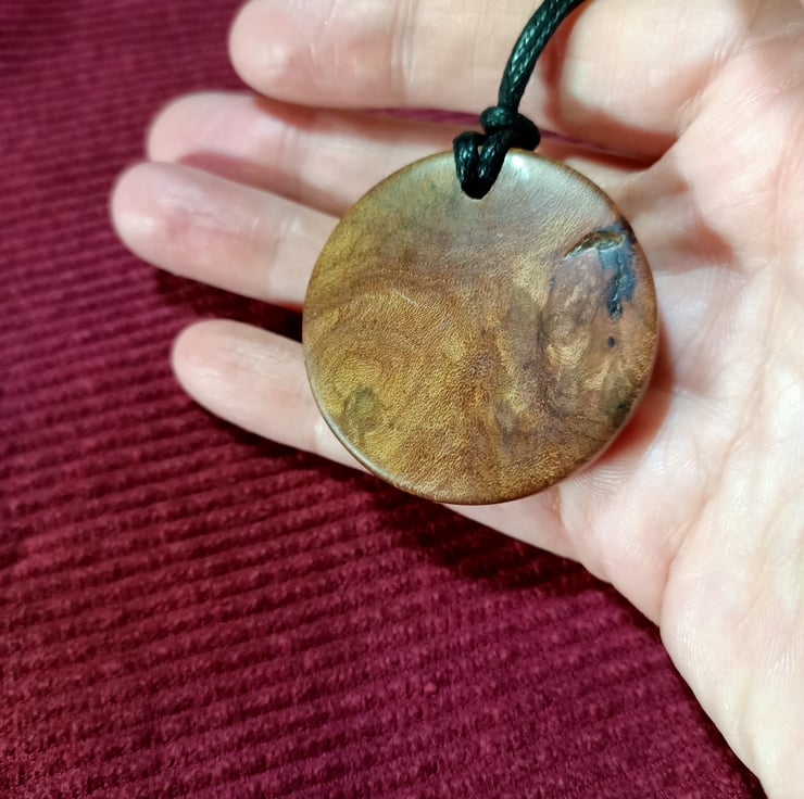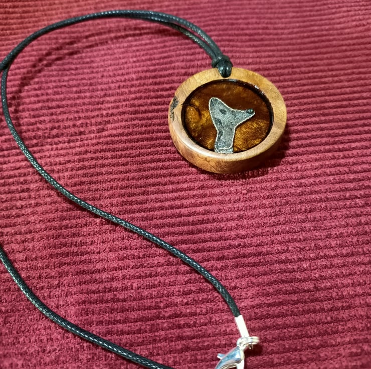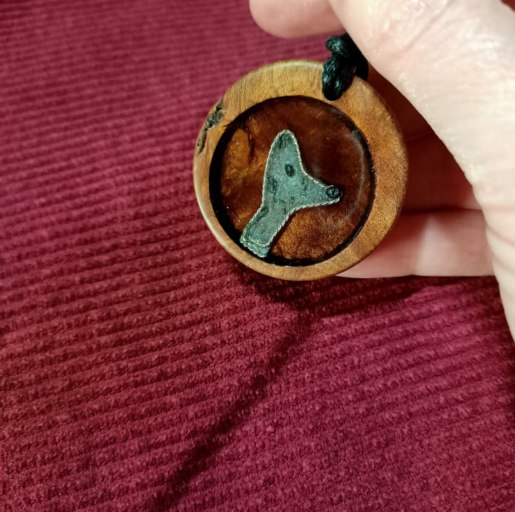 Special wooden pendant to be sold to Claire. Design with wire dog and resin infill, Scottish Elm Burr wooden pendant, as instructed.