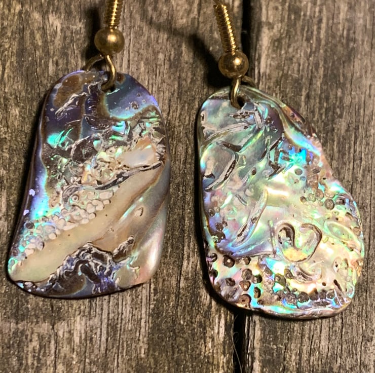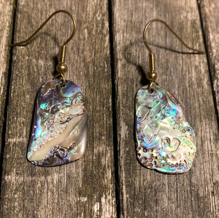 Beautiful abalone shell with multi coloured tones on gold plated fishhook earrings.