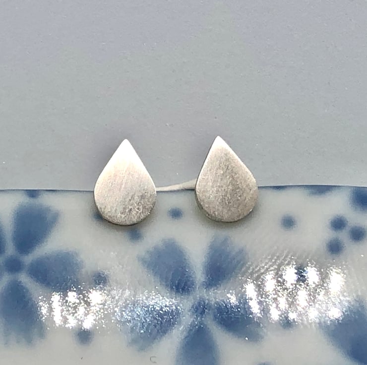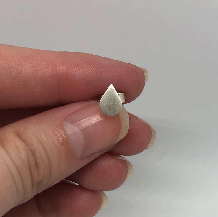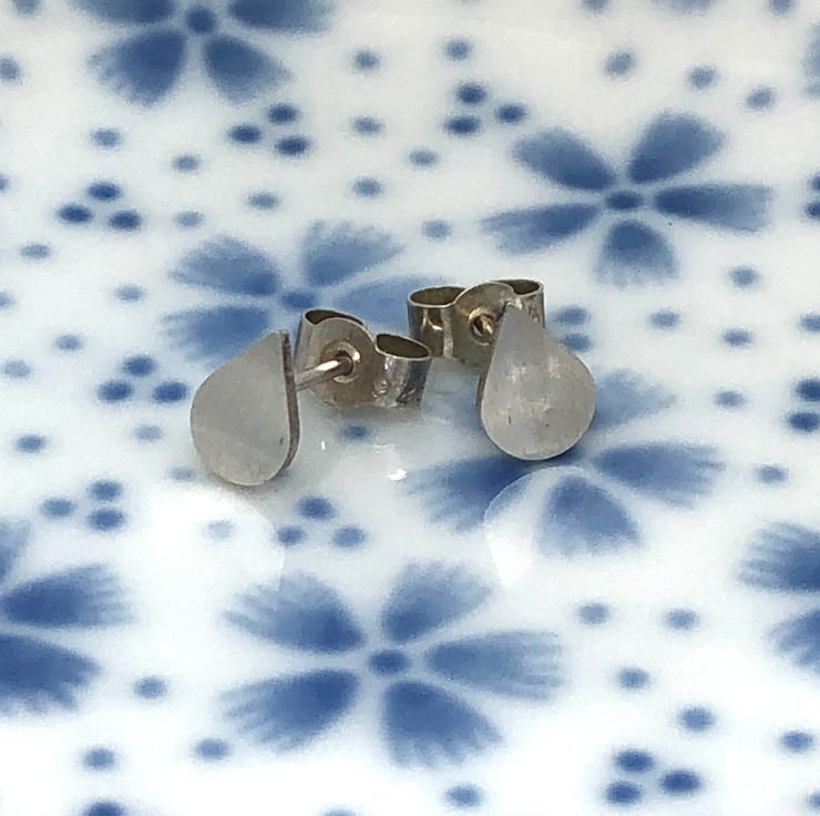 Tiny silver ear studs, just 0.5cm tall with a satin finish, perfect for every day wear