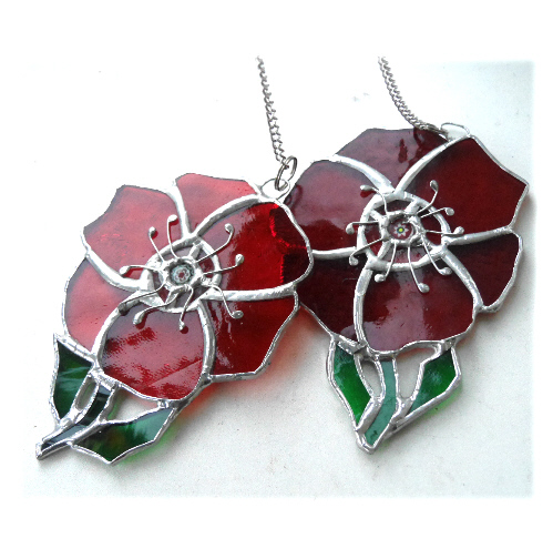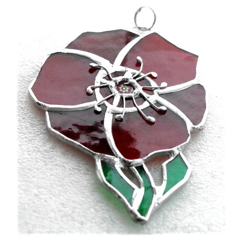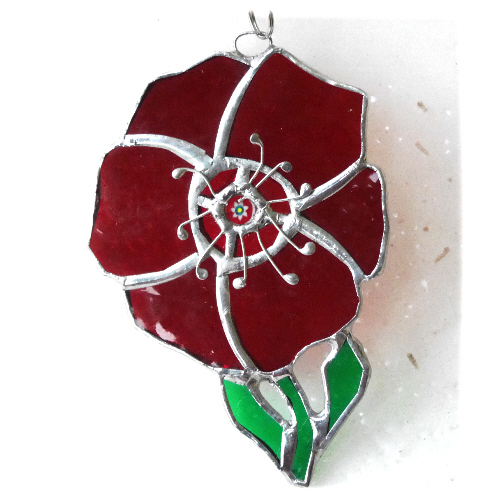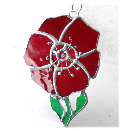 This is one of my favourite designs - a poppy - a stained glass suncatcher made using the Tiffany copper foil technique.