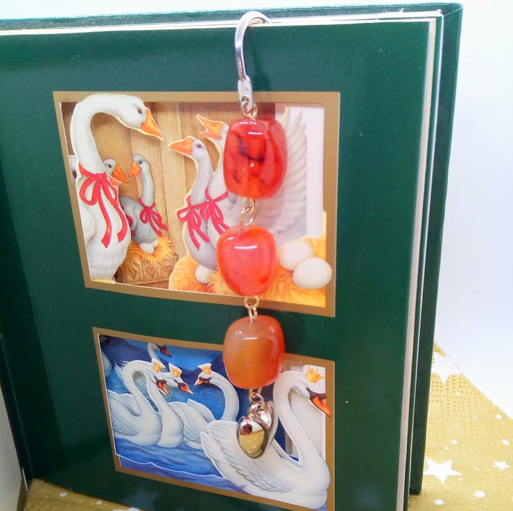 Red Carnelian Beaded Bookmark with Puffed Silver Heart Charm, Reading Accessory, Birthday Gift, Teachers Gift, Book Lovers Gift, Gift for Her, End of Term Gift