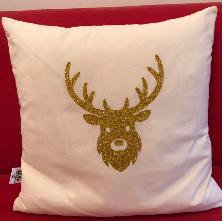 The cushions are made from calico fabric and comes with a Glitter Vinyl Design on the front of the cushion only, complete with a zip fastening.
