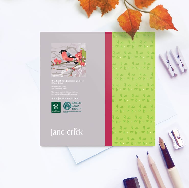 Bullfinch on Japanese Quince Design ©Jane Crick