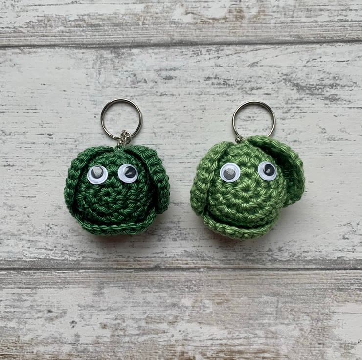 This item is not a toy. These crochet Brussel sprout keyrings have been handmade by me in my Devon home and are ready to ship. Colour may vary slightly due to monitor settings.