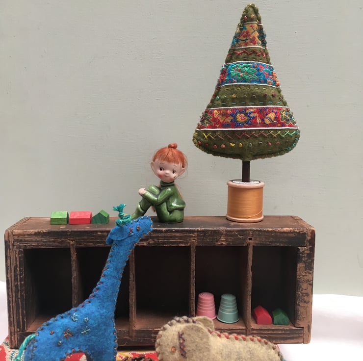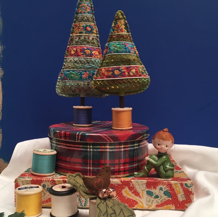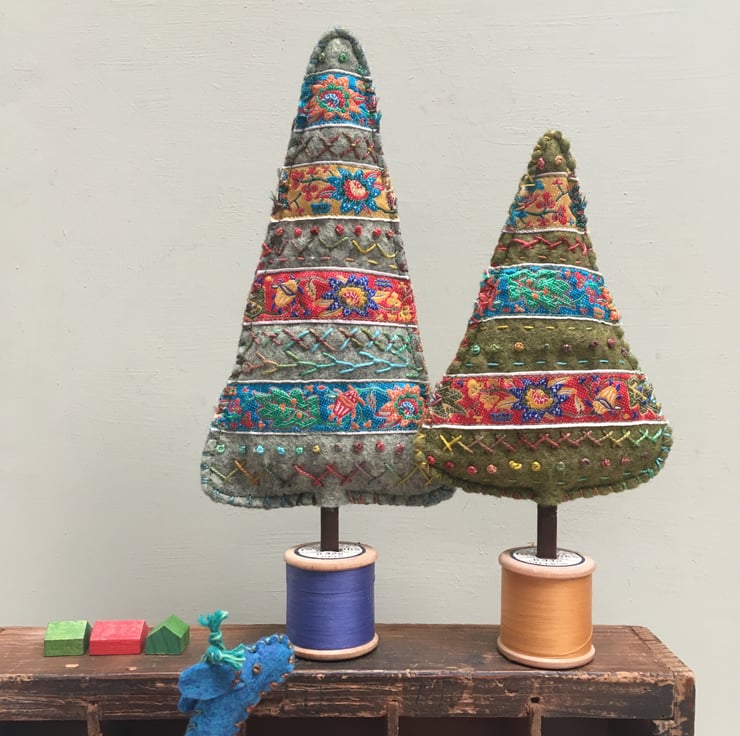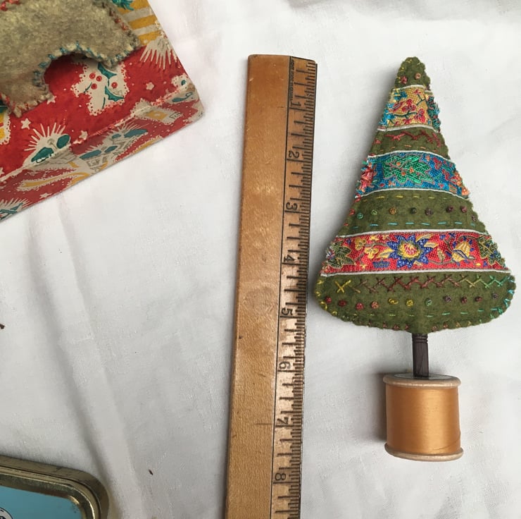 I’ve been making felt Christmas trees for around 7 years. Each year I look for a variation and this year I found this amazing vintage braid and had a flash of inspiration!