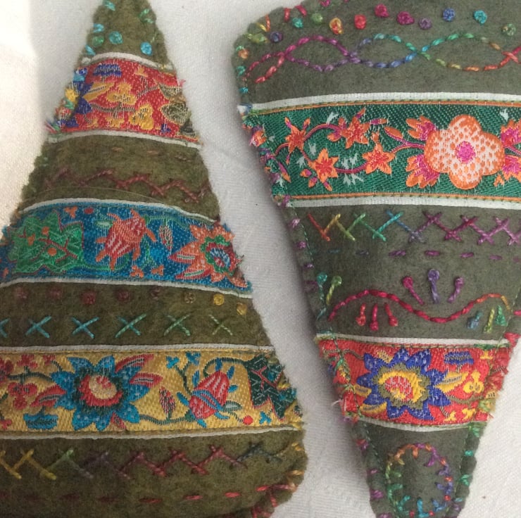 I’ve been making felt Christmas trees for around 7 years. Each year I look for a variation and this year I found this amazing vintage braid and had a flash of inspiration!