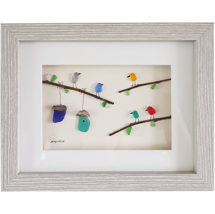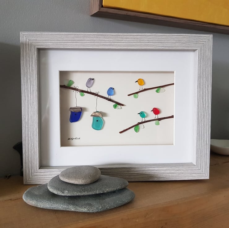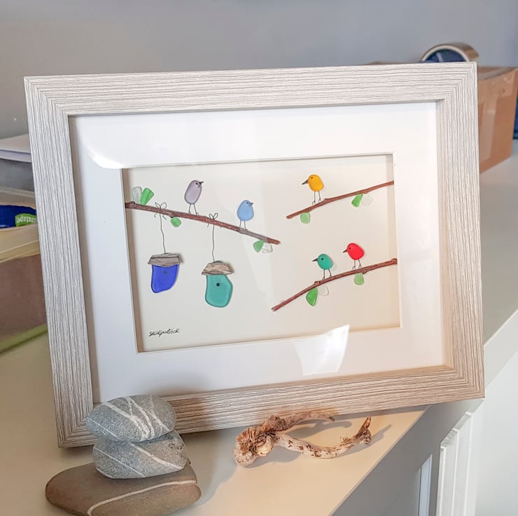 Colourful Birds is a unique pebble art creation made by me, Sophie Kirkpatrick.