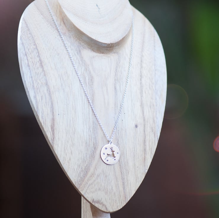 I made this necklace using the traditional saw piercing method. I used a jewelers saw to hand cut the reindeer and the little stars out of a sheet of sterling silver.