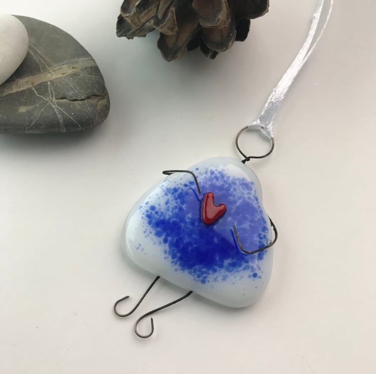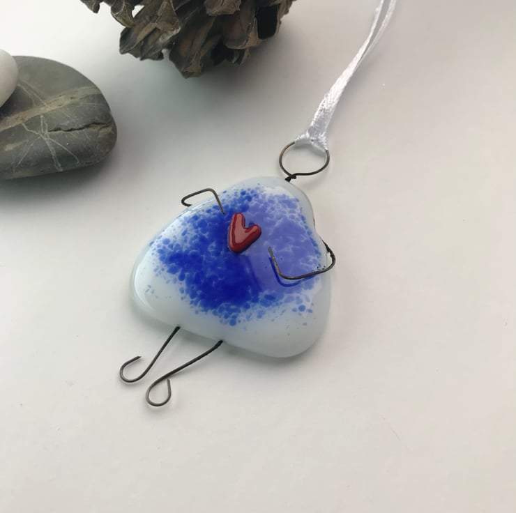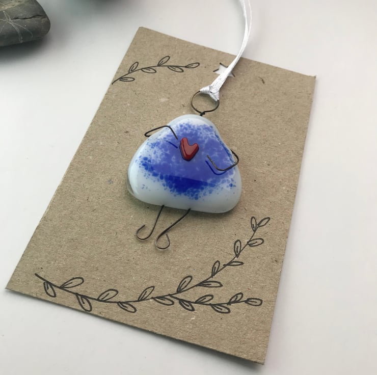 Are you wanting to send someone a hug or let them know you are thinking of them? This wire and fused glass girl holding a heart is a lovely way to do this.