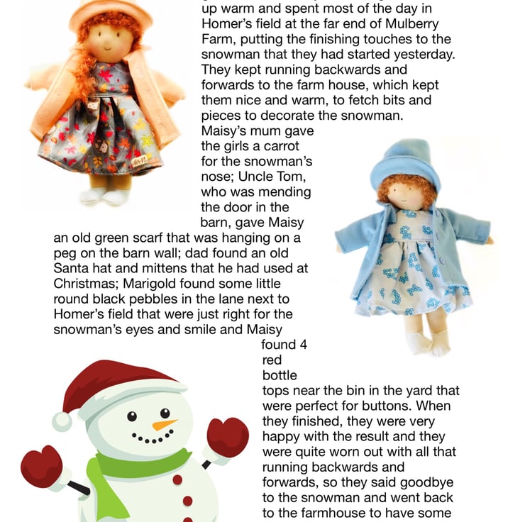 There are other children in Maisy’s class at school - Violet, Billy with his pet rabbit, Amber, Tilly, Rosie and her kittens, Amelia, Ruby, Marigold, Bobby with Max the dog, and the twins Oliver and Olivia, who have a puppy called Oscar. The dolls are all 26cm tall and baby Daisy is 16cm. Maisy and Mo love nothing more than having adventures with their friends. You can read about their adventures on my Facebook and Instagram pages - Maisy Muffin Rag Dolls and on my Mulberry Green Pinterest boards.
