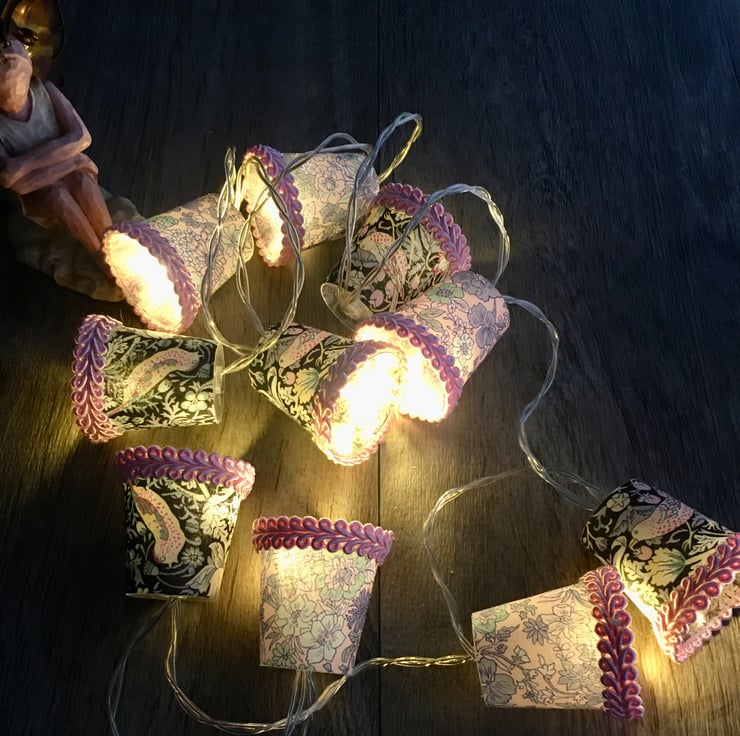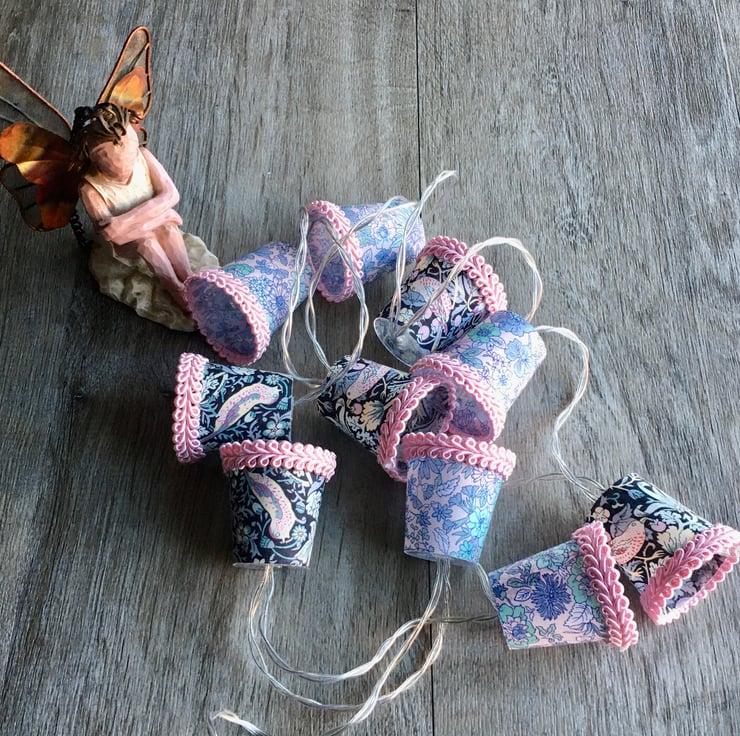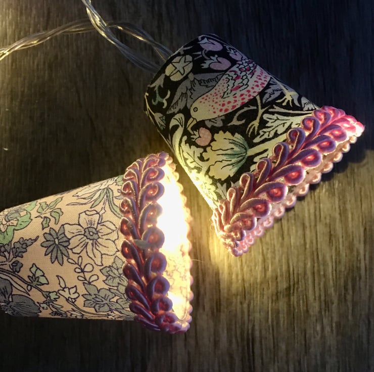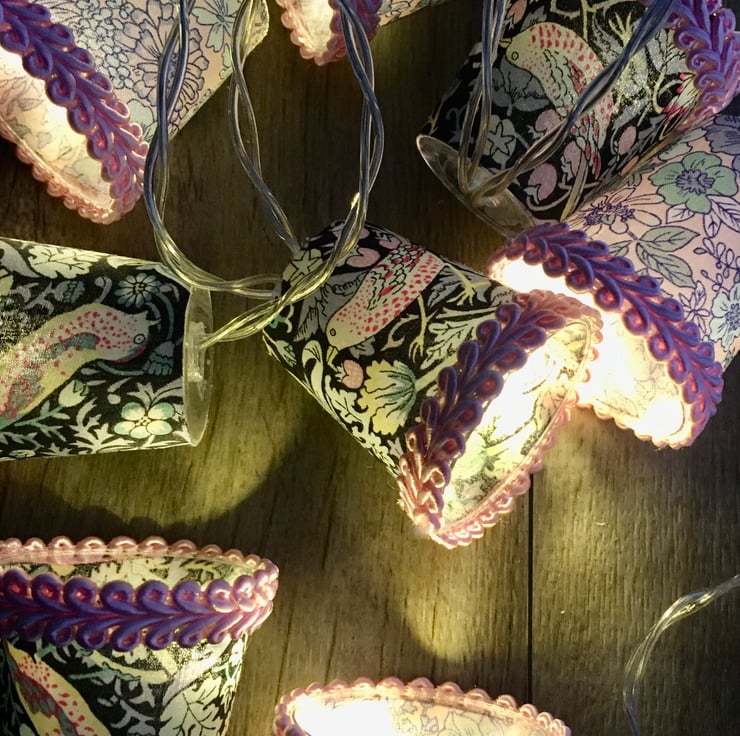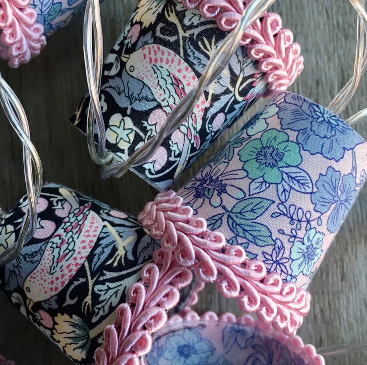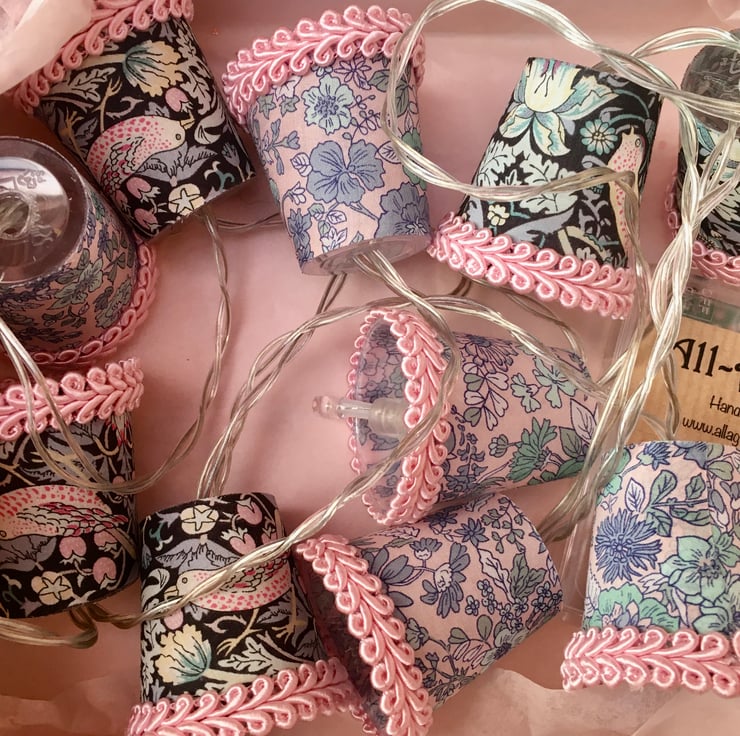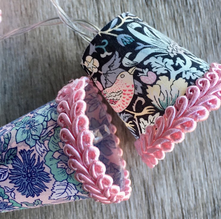 I also do custom lights to order, and I can even use your own special fabric, so please contact me if you would like a particular colour combination to fit with your decor, or have a specific fabric in mind. Just remember that these are mini lampshades, so the prints I use have to be mini too!