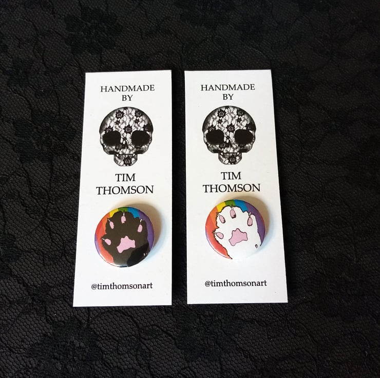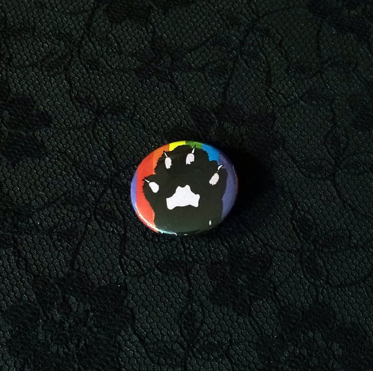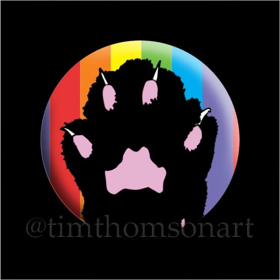 Raise your cat paw with pride! My cat paw design with a rainbow background - on a badge!