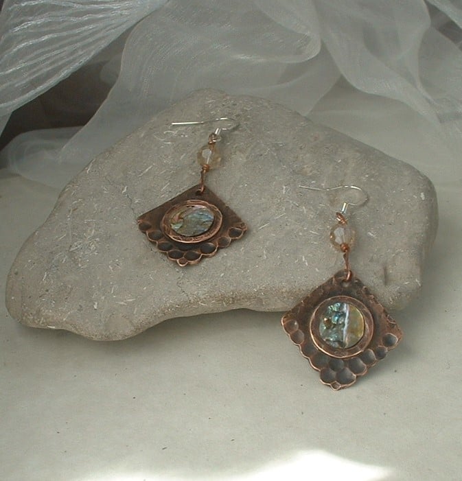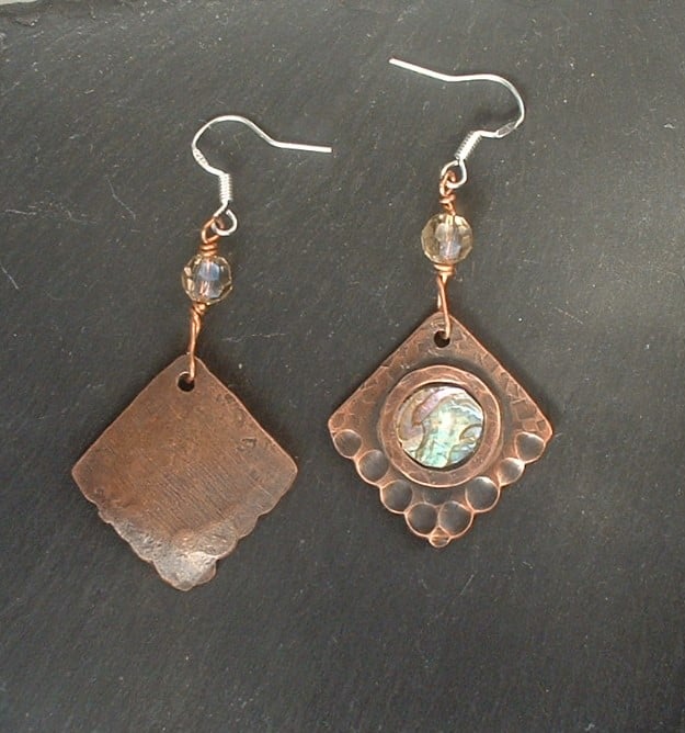 The original design for these pretty earrings was a plain diamond shape but I felt there was something missing so I used a hammer and dapping tool to form the hollows, spreading the metal to create the wavy edges, it enhances the design and gives them another dimension.