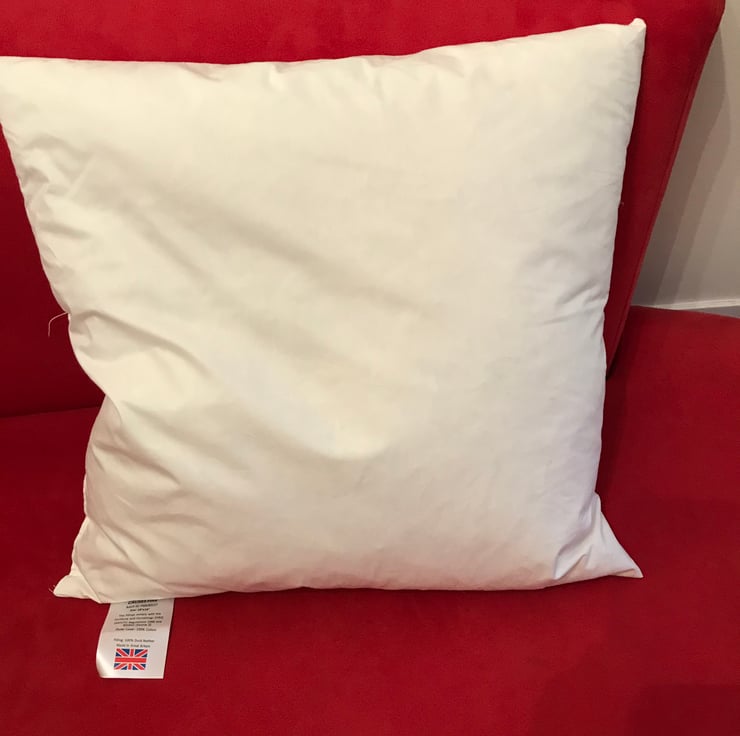 The cushion includes a luxury Duck Father pad 45cm x 45cm, with a zip opening and all the seams overlocked with a Kind Crafts tag logo on the side.