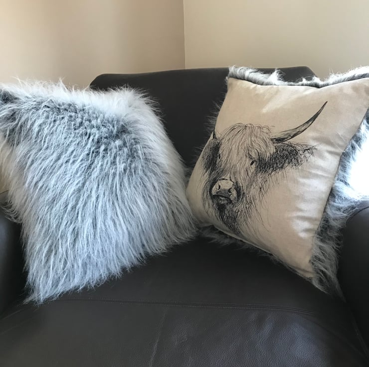 Loving the look of the high land cows and mixing the faux fur for a fab fun cushion. Would look fab in your home.