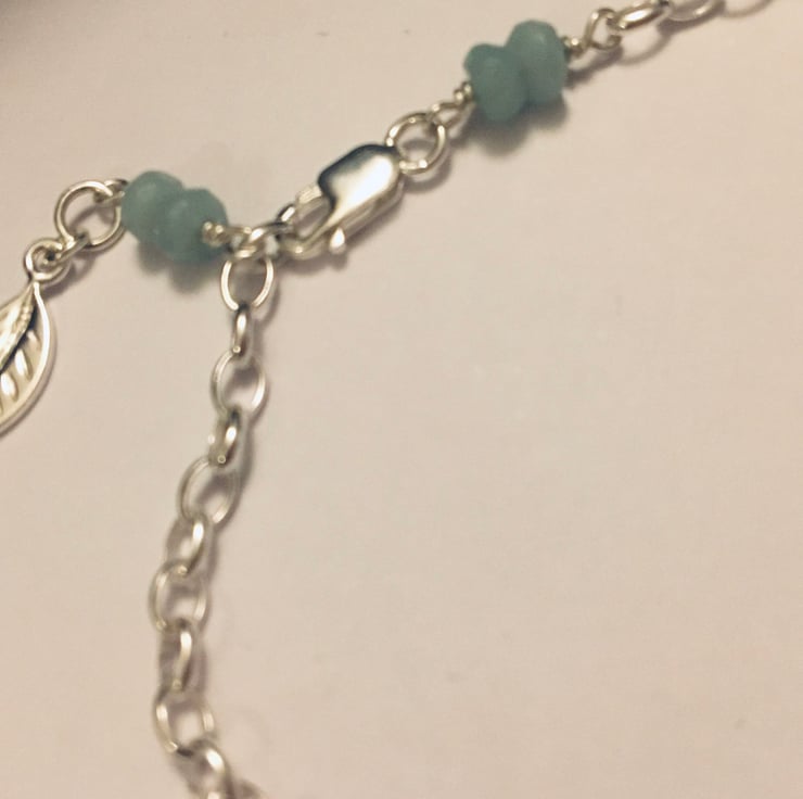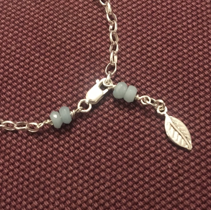 The chain is accented by 4mm faceted rondelles either side of the clasp, along with a little silver leaf.