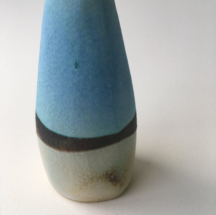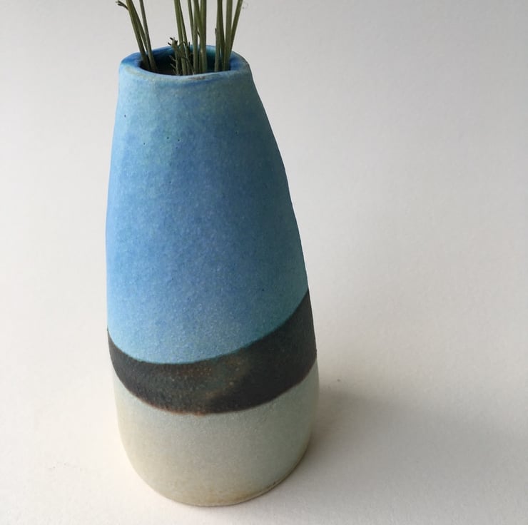 A beautiful little vase for a delicate posy of fresh flowers. This small stoneware ceramic vase is both functional and decorative, it will hold water for flowers or herbs having a shiny glaze on the inside.