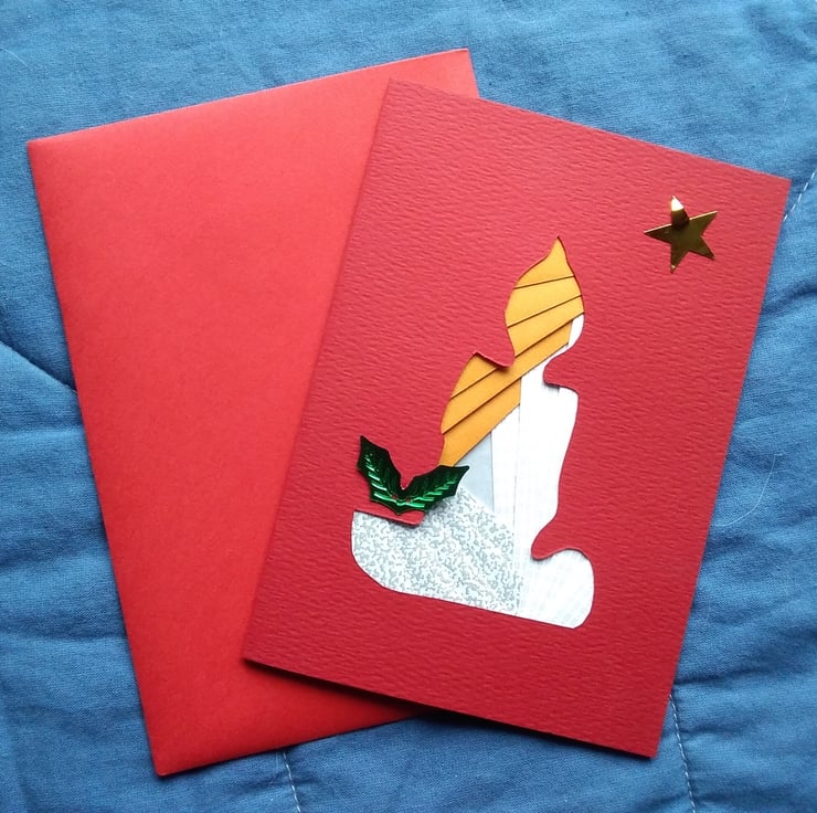 One beautifully crafted Christmas card made just as you want with love. Normal A6 size for postage. Comes with an envelope and you can have a message written inside for no extra cost.