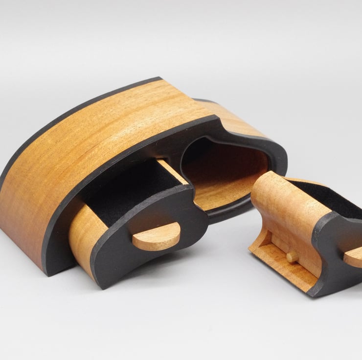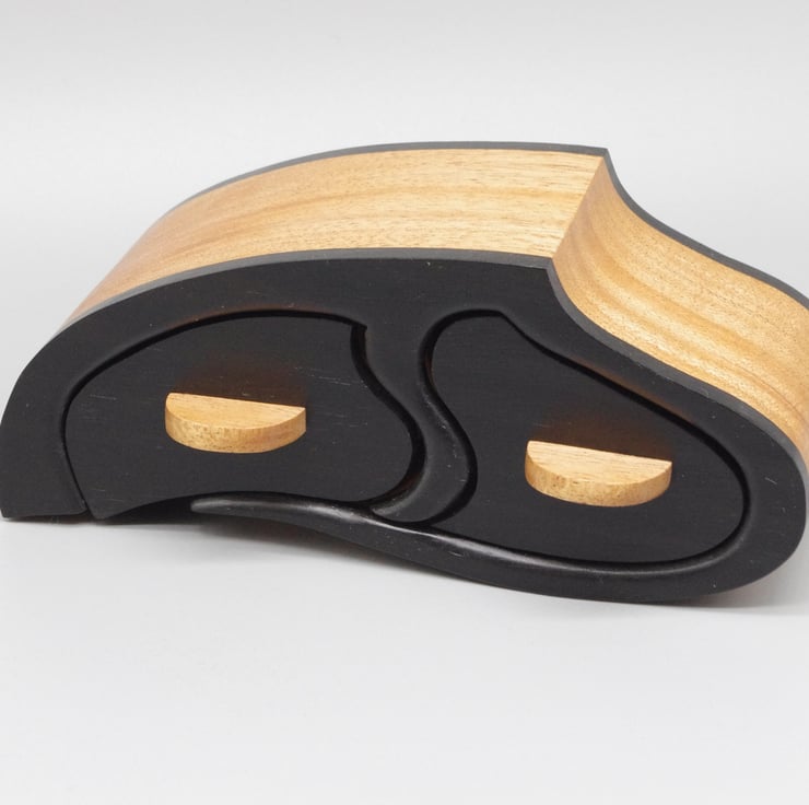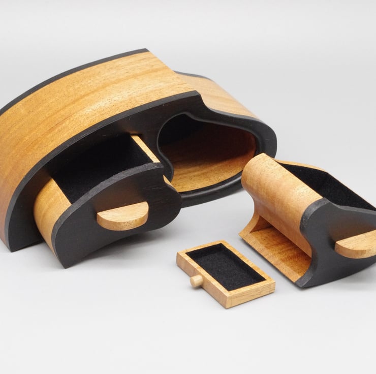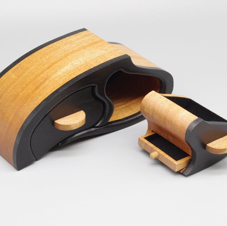 An impressive two drawer wooden trinket, jewel box, with a secret drawer.