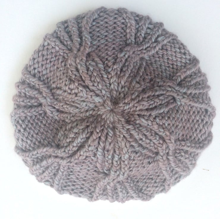 This is a downloadable pdf file - knitting pattern for a gorgeous Cable Hat, uses twists and turns to take the ribbing right up to the top of the hat where it finishes in a brilliant show stopping flower motif.
