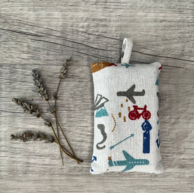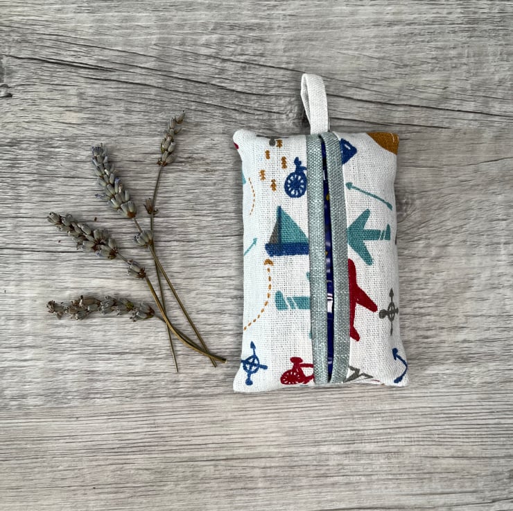A useful way to keep tissues together. These have been made with children in mind as the fabric features trains, planes, bicycles and boats! They would be handy to keep in a school book bag or drawer.