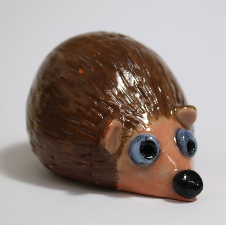 These 'Happy Hedgehogs' are handmade in my pottery studio. Each one starts as a pinch pot and is shaped into a little character. After biscuit firing they are painted with coloured underglazes and a shiny glaze ready for stoneware firing. they are around 8cm long