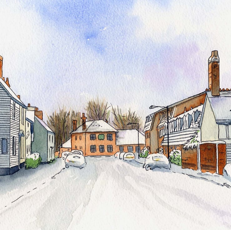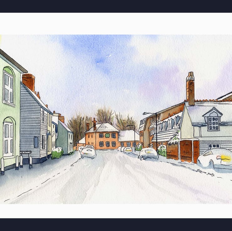 The High Street in Burnham is at the bottom of the town and runs parallel to the quay and the river. It is best known for the Clock Tower but there are also pubs, shops, tea rooms and craft outlets. This was a rather hushed day after a night of snow.
