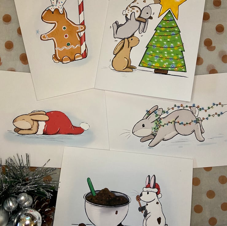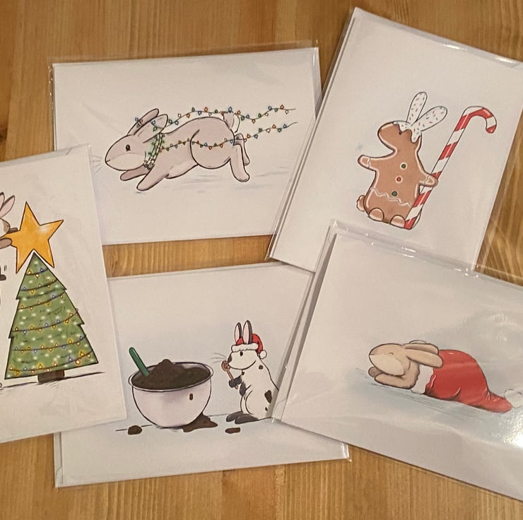 We are excited to share with you our mixed pack of Christmas cards featuring adorable and cheeky Willow Grove Designs bunnies. Each pack contains 5 different designs, perfect for all the bunny and animal lovers in your life.