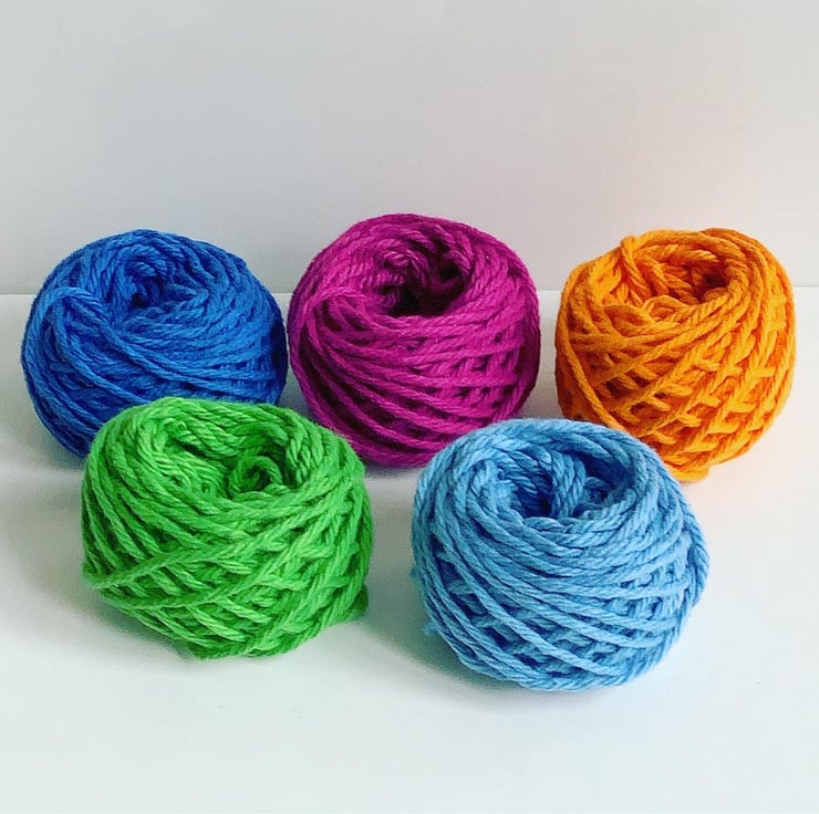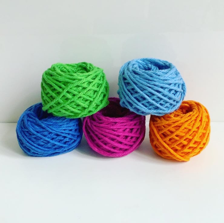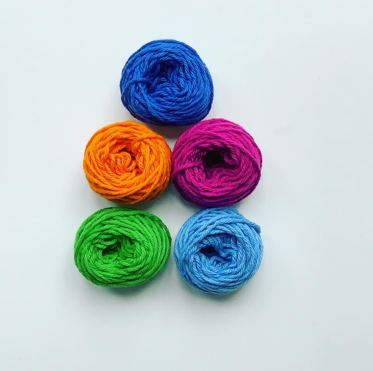 A great selection of five colours in 10g balls of cotton yarn. This yarn perfect for toy making and is suitable for crochet or knitting. The pack includes dark blue, green, magenta, orange and mid blue.