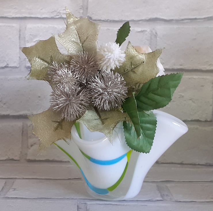 This one of a kind vase could be filled with fresh or dried flowers, perhaps using a block of oasis or a small plastic bottle as a liner. Alternatively, fill with sweets or potpourri or display as a stand alone display piece.