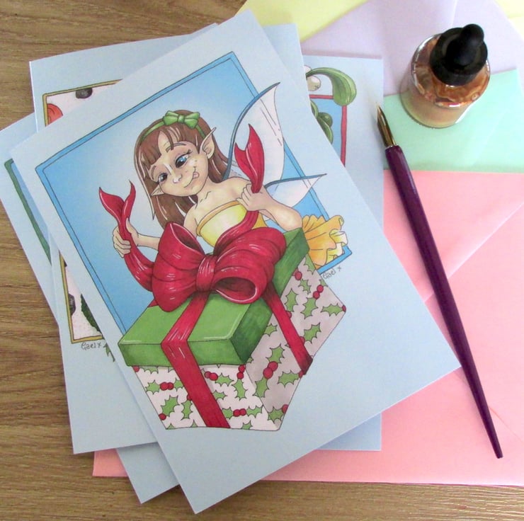 Set of Four Fairy Christmas Cards reproduced from original ink drawings by Gael Hewitt