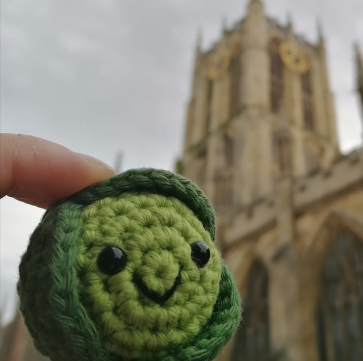 Due to the handmade nature of this product, the sprout that you receive will be slightly different to the one in the photo, but he will be just as cute! Each sprout measures approximately 5cm top to bottom, and 4,5cm front to back, with a hanging loop of about 6cm. They have been crocheted by hand from cotton yarn with polyester stuffing, and plastic safety eyes.