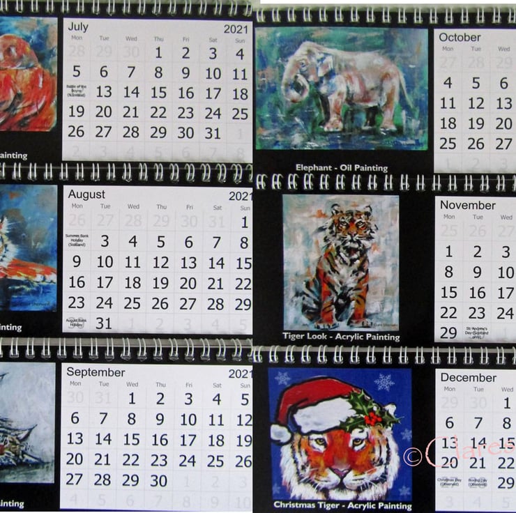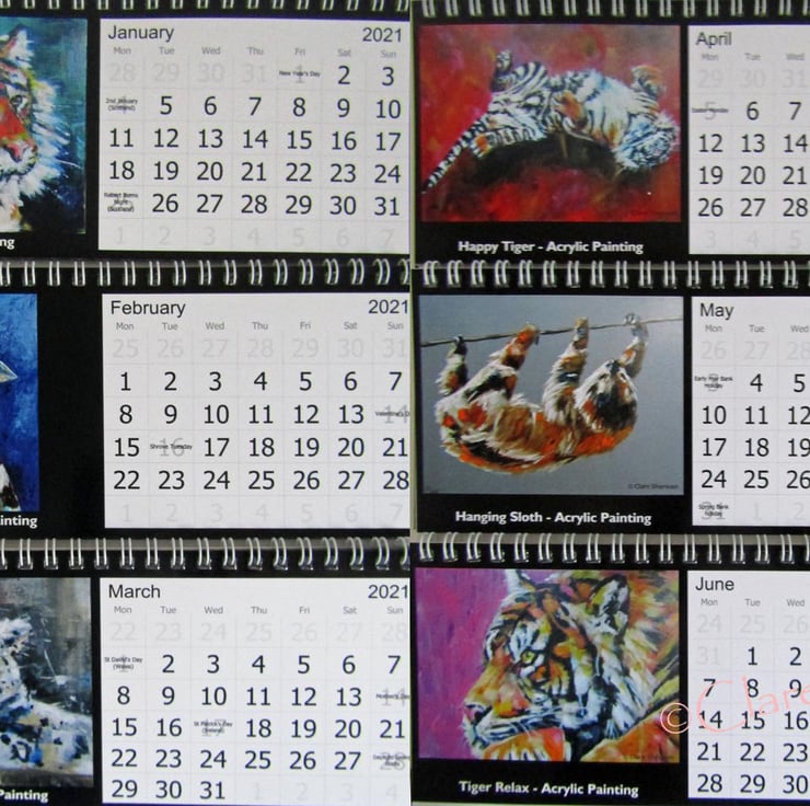 Animal Art Calendar 2021 from Original Acrylic Paintings Tiger