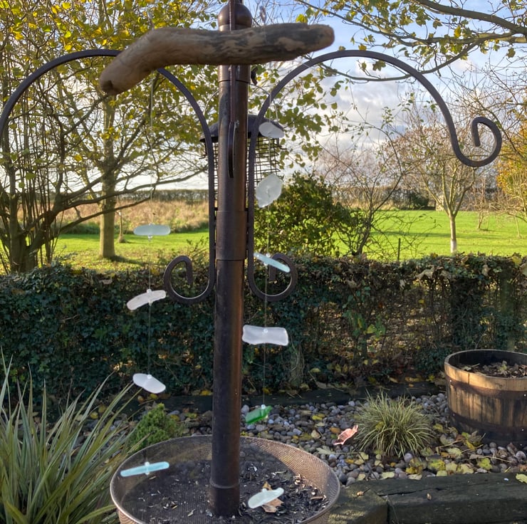 Seaglass and driftwood collected from Withernsea beach has been used to make this 2 stranded suncatcher, suitable for inside use as a window decoration or outside in the garden.